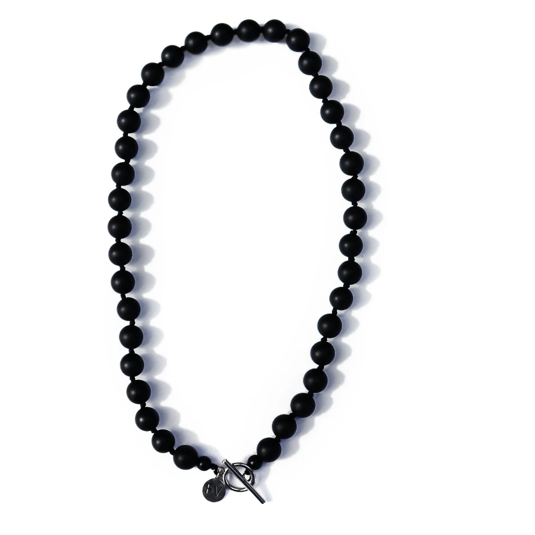 This Black Onyx Fob Necklace features the 10mm matte black onyx stones, making it a striking piece that is sure to make a statement.