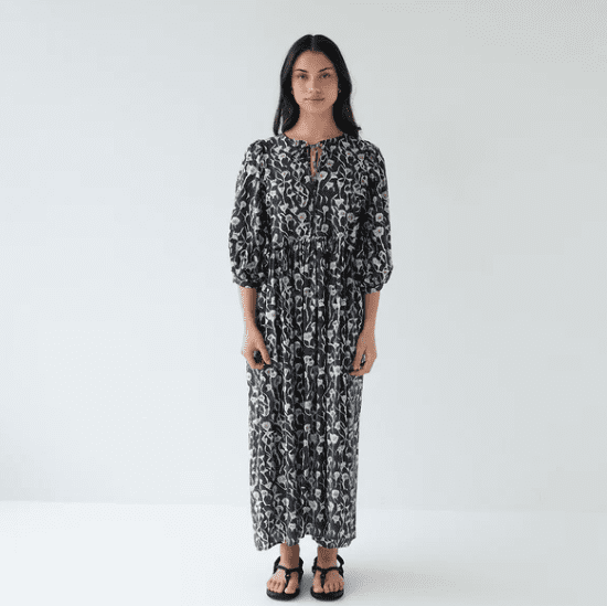 Statement sleeve midi dress with a relaxed silhouette & cute ties. Throw on & go. Pockets of course. S/M (8-12), L/XL (14-18) Measurements: 1/2 Waist S/M: 52cm L/XL: 59cm Shoulder to hem S/M: 130cm L/XL: 130cm. !00% Cotton
